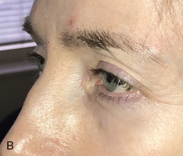 Pre- (A) and post- (B) CO 2 resurfacing and botulinum toxin to static crow’s feet rhytids.