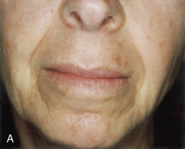 Some deep nasolabial folds are associated with a short upper lip and respond well to botulinum toxin treatment to the apex. Most deep folds, however, are best treated with volume replacement to the superolateral support structures of the face, replacing lost ‘suspension’ of the midface and therefore ‘lifting’ the nasolabial folds. Some patients require a surgical facelift, although it is not uncommon for a deepening of the nasal end of the fold to persist after an effective operation. Most patients presenting for botulinum toxin are not ready to consider major surgery at the time of their initial consultation and are thrilled to have a short-term ‘cheat’ with Perlane. Some will benefit from thread lifting, albeit for about 18 months before the threads dissolve.