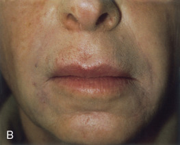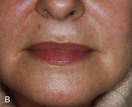 Before (A) and after (B) filler to the nasolabial folds and perioral lines.