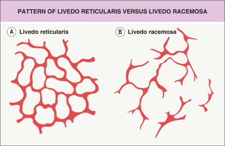 There are a number of causes of LR ( Table 106.1 ), and the clinical pattern of LR can vary with the nature of the underlying cause. A complete fine network is indicative of alterations in blood flow caused by vasospasm or by factors within the blood that alter the viscosity and the flow through the vessels. Vessel wall pathology and intraluminal obstruction are more likely to result in a patchy distribution of LR, depending on the distribution of the underlying pathology.