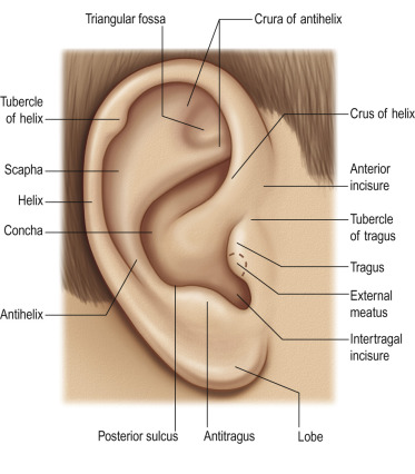 Anatomical structures of the ear. The tubercle of the helix is synonymous with Darwin’s tubercle.
