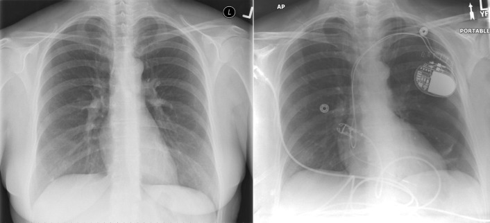 Chest radiography has a standard role in the identification of several potential complications such as pneumothorax, hemothorax, and several forms of malposition after insertion of pacemakers, implantable cardioverter defibrillators (ICDs), and cardiac resynchronization therapy devices.