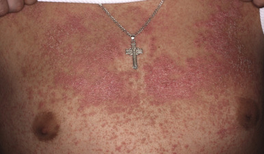Pustules overlying erythroderma can also be a feature of patients with mutations in CARD14, which typically has its onset during infancy or early childhood. More commonly, however, patients with CARD14 mutations often show signs of recalcitrant plaque-type psoriasis or PRP (see Pityriasis Rubra Pilaris section) and respond rapidly to ustekinumab.