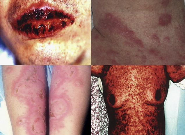 | Common Sites of Cutaneous Lesions | Head, trunk, and proximal extremIties | More commonly seen on extremities | Mucosae, trunk, and extremities | Trunk and extremities | Trunk and extremities, which may include acral regions |