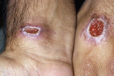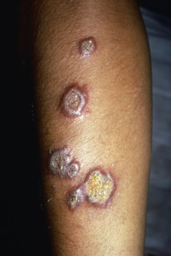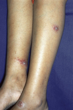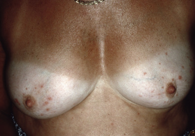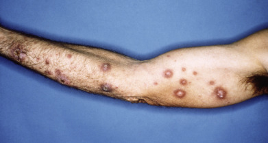 Bites and infestations present with wide-ranging manifestations, including papules, vesicles, excoriations, and urticarial lesions. Bedbug bites often involve the arms and develop clinical features of prurigo nodularis. A biopsy will demonstrate a wedge-shaped perivascular lymphoid infiltrate with endothelial swelling and eosinophils, suggesting the correct diagnosis.