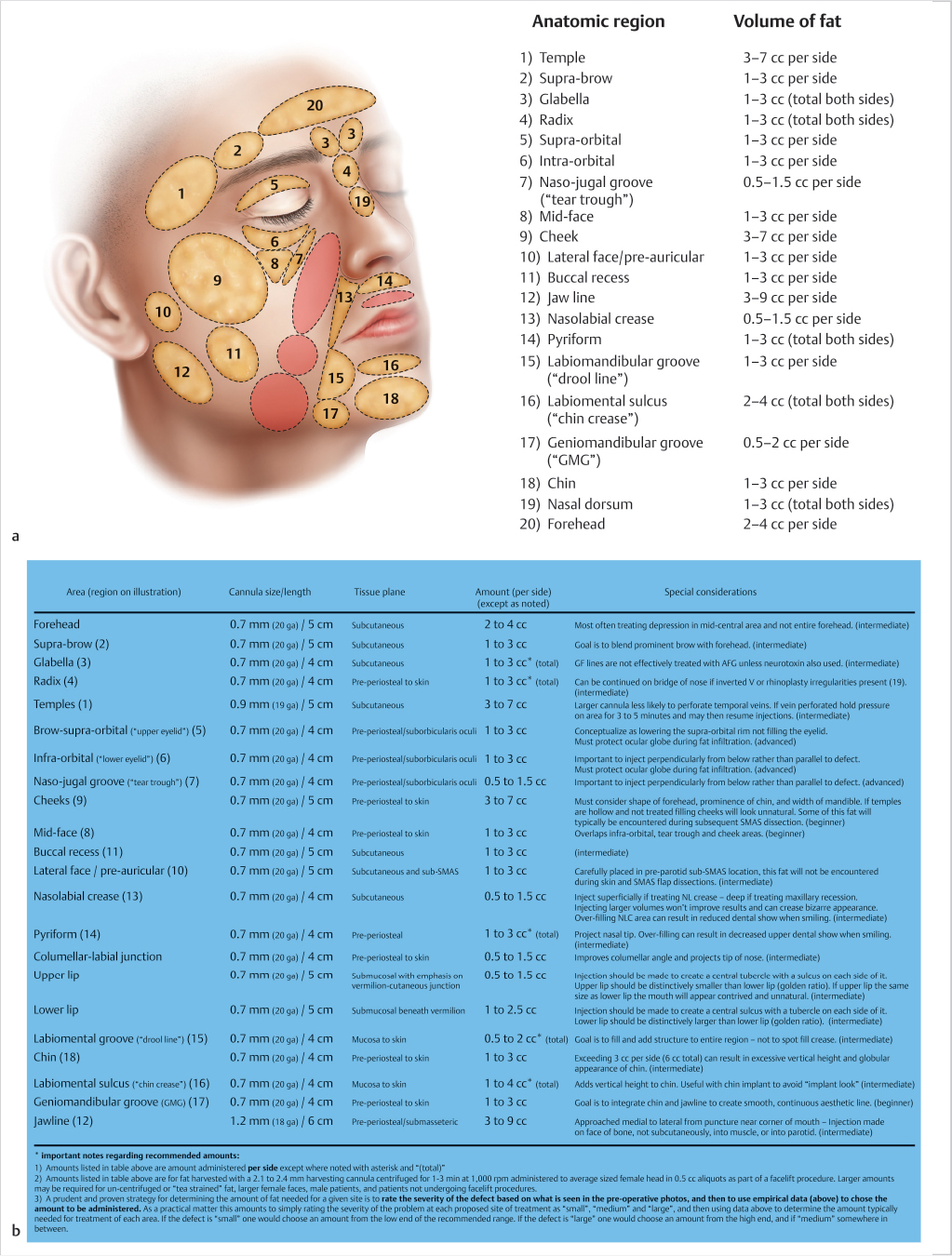 Ultimately this technique should be viewed as an artistic endeavor in terms of the volume and distribution of fat placement; however with time, a systematic approach to the face is developed, which requires separating the face into regions with a range of volumes used for each region (Fig. 12.1).
