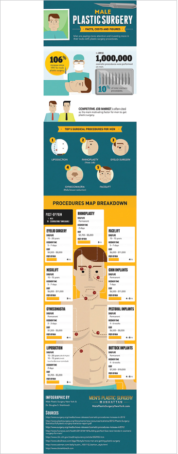 We decided to continue our content-first strategy off-site as well. Our goal was to establish Male Plastic Surgery New York as the premier platform for men’s aesthetics. We created an infographic, which is a popular marketing tool that displays simplified content in an eye-catching way. Our infographic shared facts and figures about male plastic surgery and syndicated it to the public5 ( Fig. 1.3 ). It spread like wildfire, garnering republications in a number of online media outlets, such as the SFGate, the San Francisco Chronicle, Babble, Jezebel, and the Business Insider. These critical mentions either used the infographic or used the content and attributed the information back to the site. This served as both public relations and SEO. The placements would create a buzz around the brand while building authority in SEO. High authority citations will have a positive effect on search rankings within Google and other search engines.