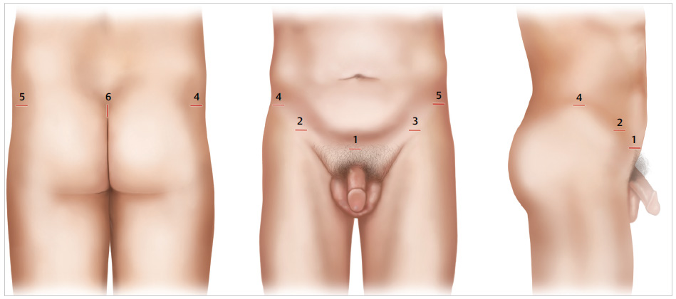 Suprapubic fat: To create a harmonious anterior torso, lipodystrophy of the mons area cannot be ignored. In males, reduction of mons adiposity will increase penile shaft exposure, which can be an added benefit for many patients.