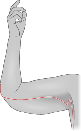 • This excision often passes distal to the elbow (Fig. 58-5).