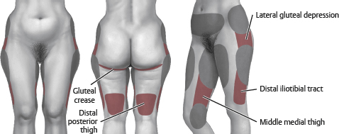 • Buttock: Sacral, midaxillary line in panty line