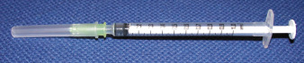 We recommend using no bigger than 1 mL tuberculin or insulin syringes. These are essential for the dose to be gauged accurately during injection. The doses recommended in this book are given in units of volume. The finest mark on a 1-mL syringe is 0.01: we often recommend using 0.025 mL and 0.01 mL (more later). Beginners may prefer a 0.05-mL syringe. Constant practice with 0.5-mL insulin syringes and then 1-mL syringes ( Fig. 4.3 ) will develop the sense of touch to repeatedly administer small ‘droplets’ if necessary. The author prefers to use a 1-mL syringe and often more than one 30-gauge needle to keep the needle sharp while minimising stimulation of the nociceptors on the skin surface.