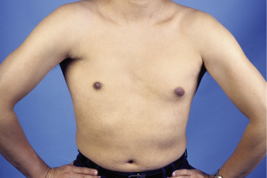 All patients should be examined before raising the flap, any scar over the chest wall that might interfere with the design of the flap should be noted, and then the incision for skin island modified accordingly. The presence of the pectoralis major muscle should be checked by asking the patient to tighten the muscle by adduction of the arm. A patient suffering from Poland syndrome has congenital absence of pectoralis major muscle ( Fig. 34.3 ). For these patients, an alternative flap should be used for reconstruction.