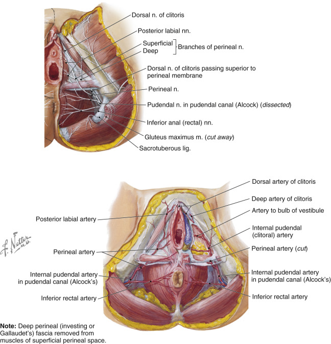 The perineum consists of a complex fibromuscular system, which aids in actively supporting the abdominal and pelvic viscera, and plays active roles in sexual function, micturition, and defecation. We focus on the recipient neurovascular structures located in the perineum.