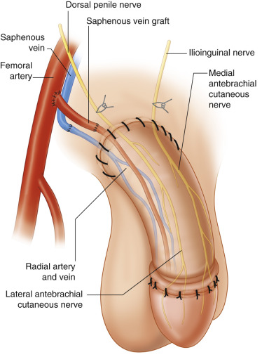 The options for recipient neurovascular structures ( Fig. 19.4 , see also Fig. 11.3 , 11.6 , and 11.8 ) for microvascular phalloplasty include: