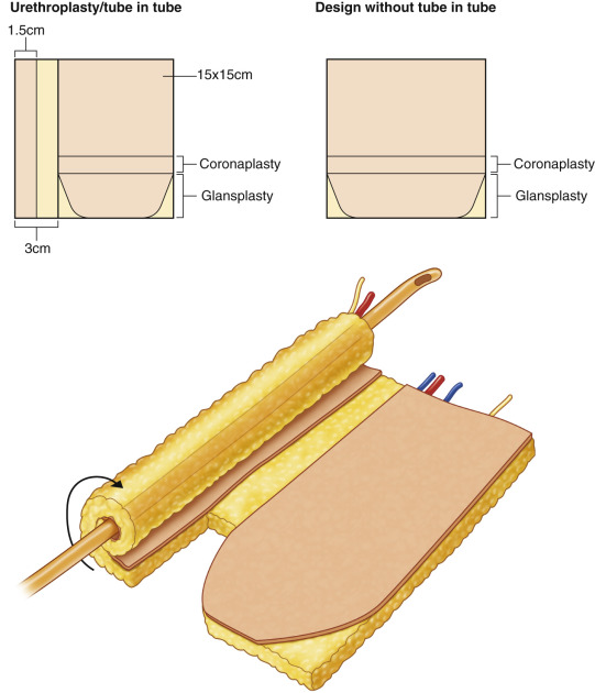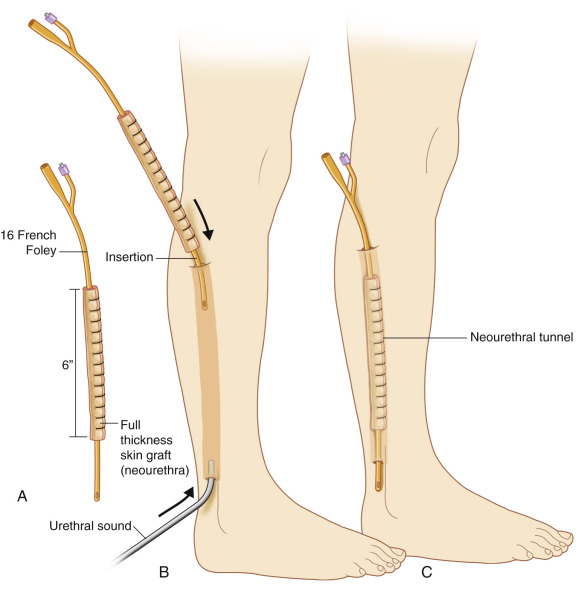 A full-thickness skin graft is wrapped around a Foley catheter and placed under the proposed flap 3 months prior to the phalloplasty. This method has been shown to provide a viable continuous urethra of sufficient length, as well as a trend to a lower incidence of urethral fistulas and better-controlled girth.