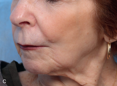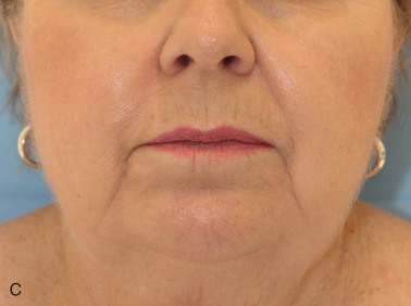 Execution of LCs on the lip is identical to other locations on the central face. Redundant tissue cones (RTCs) are removed to the SMAS/muscle layer. In order to minimize incisional tension, the wound margins are sharply undermined with scissors to release skin from the tethering of the orbicularis oris. Undermining is performed up to 1 cm from the wound margin. Elevating tissue beyond this distance increases the possibility of postoperative bleeding and does not facilitate further tension reduction. Once meticulous hemostasis is achieved, suturing the lip is performed in a bilayered fashion, first with buried vertical mattress sutures and then with a cuticular layer of sutures.