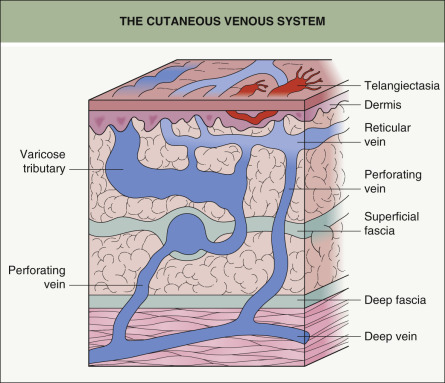 venous anatomy, venous disease of the leg, phlebology, telangiectasias, reticular veins, varicose veins, superficial and deep venous systems, sclerotherapy, ambulatory phlebectomy, endovenous laser and radiofrequency ablation
