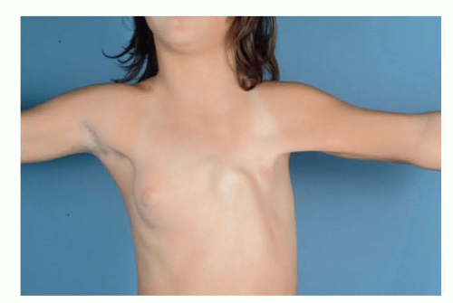 The most common presentation is that of a patient with a unilateral absence of the sternocostal head of the pectoralis major muscle with hypoplastic or absent breast parenchyma.1