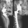 A pillow is placed between the legs to prevent excessive adduction, and the hip is placed in 45 degrees of flexion with the knee flexed to 90 degrees. (We try to keep the knee flexed when possible during the procedure to minimize tension on the sciatic nerve.) The tip of the greater trochanter is then marked (Fig. 14-1).