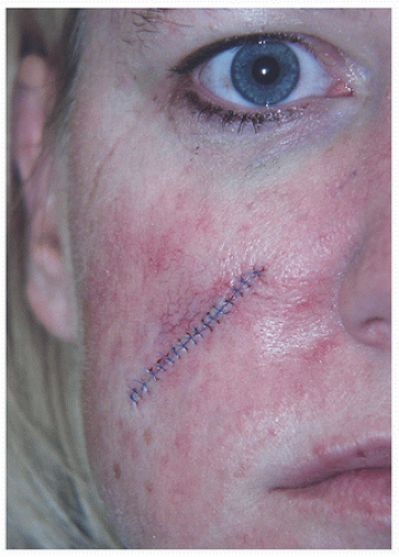 To increase the chance of producing an incision and thus a scar that remains fine and well hidden, the wound should be closed along relaxed skin tension lines (RSTL) whenever possible. The RSTL tend to run perpendicular to underlying musculature and fall within real or anticipated rhytides or furrows (see Fig. 1.1).