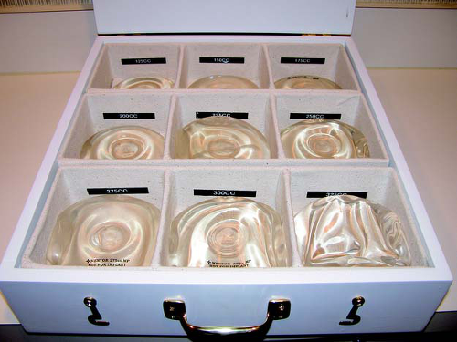 Preoperative sizing is performed at least two times before surgery. The first session is generally more time consuming and is usually done with the nursing staff, whereas the second session is done with the surgeon, as it is either largely confirmatory or the surgeon can give additional input to guide the process. Patients unable to clearly state a narrow range of preferred sizes are brought back for a third visit if necessary. The goal is to narrow the choice down to two sizes differing by not more than 25 cc. Patients are advised that this narrow range represents approximately one-eighth of a cup size and the final selection thereafter is best left as an intraoperative decision.