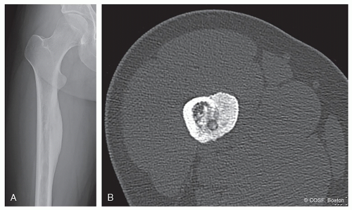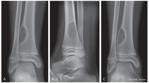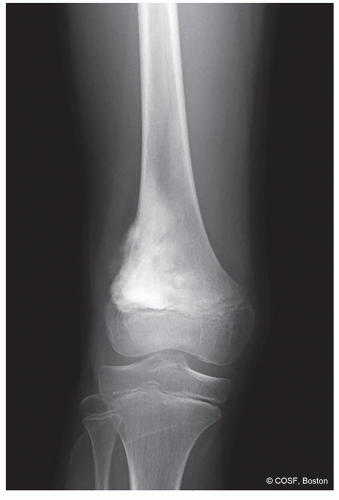 Metaphysis: Benign—nonossifying fibroma, osteochondroma, unicameral bone cyst, aneurysmal bone cyst, chondromyxoid fibroma (see Figure 41.1)