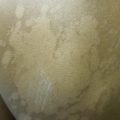 Non-scaly hypopigmented macules and patches on the back of a woman