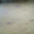 The hypopigmentation was felt to be most consistent with progressive macular hypomelanosis (PMH). This disorder is often mistaken for other common conditions seen in darkly pigmented patients, e.g. tinea versicolor, pityriasis alba, vitiligo, and post-inflammatory hypopigmentation. PMH can be distinguished from tinea versicolor and pityriasis alba by its non-pruritic nature and failure to respond to anti-fungal or anti-inflammatory therapy, respectively. In addition, tinea versicolor can often be confirmed by microscopic examination with KOH that will show evidence of fungus. Vitiligo appears depigmented and will illuminate under Wood’s lamp examination. Patients with post-inflammatory hypopigmentation will give a history of a primary skin eruption and a shorter clinical course. Infectious processes and cutaneous lymphoma should be considered in select populations. Rarer infectious etiologies of hypopigmentation should be especially considered if the patient is from an endemic area of leprosy, leishmaniasis, and/or pinta. If asymmetric, atrophic hypopigmented macules and patches with fine scales on the trunk, chest, and sun-protected areas are seen, one should consider the diagnosis of hypopigmented mycosis fungoides (Relyveld et al. 2007; Elmariah and Kundu 2011).