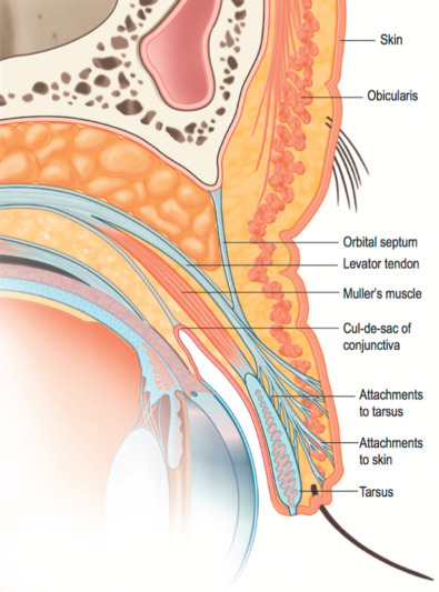 Sagittal view of the upper eyelid.