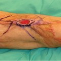 FIGURE 17-6 Wound with adhered fibrous tissue that can be loosened with PLWS, making selective debridement more effective PLWS also removes wound exudate containing chronic wound fluid components such as matrix metalloproteases (MMPs) that are detrimental to healing.