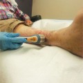 The use of PLWS is indicated for a variety of wounds that need atraumatic cleansing, debridement, tissue stimulation, and bacterial reduction (see TABLE 17-4) provided all precautions have been addressed. Specific etiologies that are appropriate for PLWS include wounds caused by neuropathy, pressure, venous insufficiency, and postsurgical incisional dehiscence or amputation healing by secondary intention.2 PLWS is also indicated for the removal of bacteria and debris in wounds associated with traumatic injury and bone exposure.4 Utilization of the flexible tips allows appropriate and safe use of PLWS for the irrigation and cleansing of tunnels, tracts, and undermining (FIGURES 17-7, 17-8).
