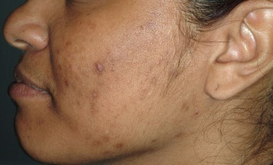 The patient usually makes the diagnosis and often has attempted therapy with over-the-counter medication. A history of hirsutism, hair thinning usually localized to top of the scalp, or irregular menses in a woman with acne should lead to the consideration of possible androgen excess. Adult women often complain of acne along the jawline that worsens around the time of their period ( Fig. 12.2 ). For any ethnicity with darker skin, acne can lead to marks of postinflammatory hyperpigmentation, which can take many months to resolve. Topical or systemic corticosteroids can also cause an acneiform eruption.