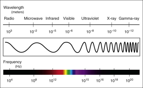 Radiofrequency refers to radiation at the far end of the electromagnetic spectrum, which has a frequency between 3 kHz and 300 MHz ( Fig. 7.1 ). Energy emitted at these frequencies is not strong enough to be ionizing. Unlike laser devices, which emit energy in the form of a unique wavelength of light, RF devices emit energy in the form of electromagnetic waves that induce an alternating current in the targeted tissue. Tissue is composed of individual molecules, which are electrical dipoles. When current or electrons flow through a material, the dipoles align with the current and then change orientation millions of times per second as the current alternates. Each tissue type has a unique resistance to this movement of molecules, otherwise known as impedance. The movement of dipoles against resistance can be thought of as a type of friction that leads to energy in the form of heat, thereby converting electrical energy into thermal energy. By Ohm’s law, energy emitted by an RF device is proportional to the current it produces (I), the specific impedance of a particular tissue (Z) and time (t):