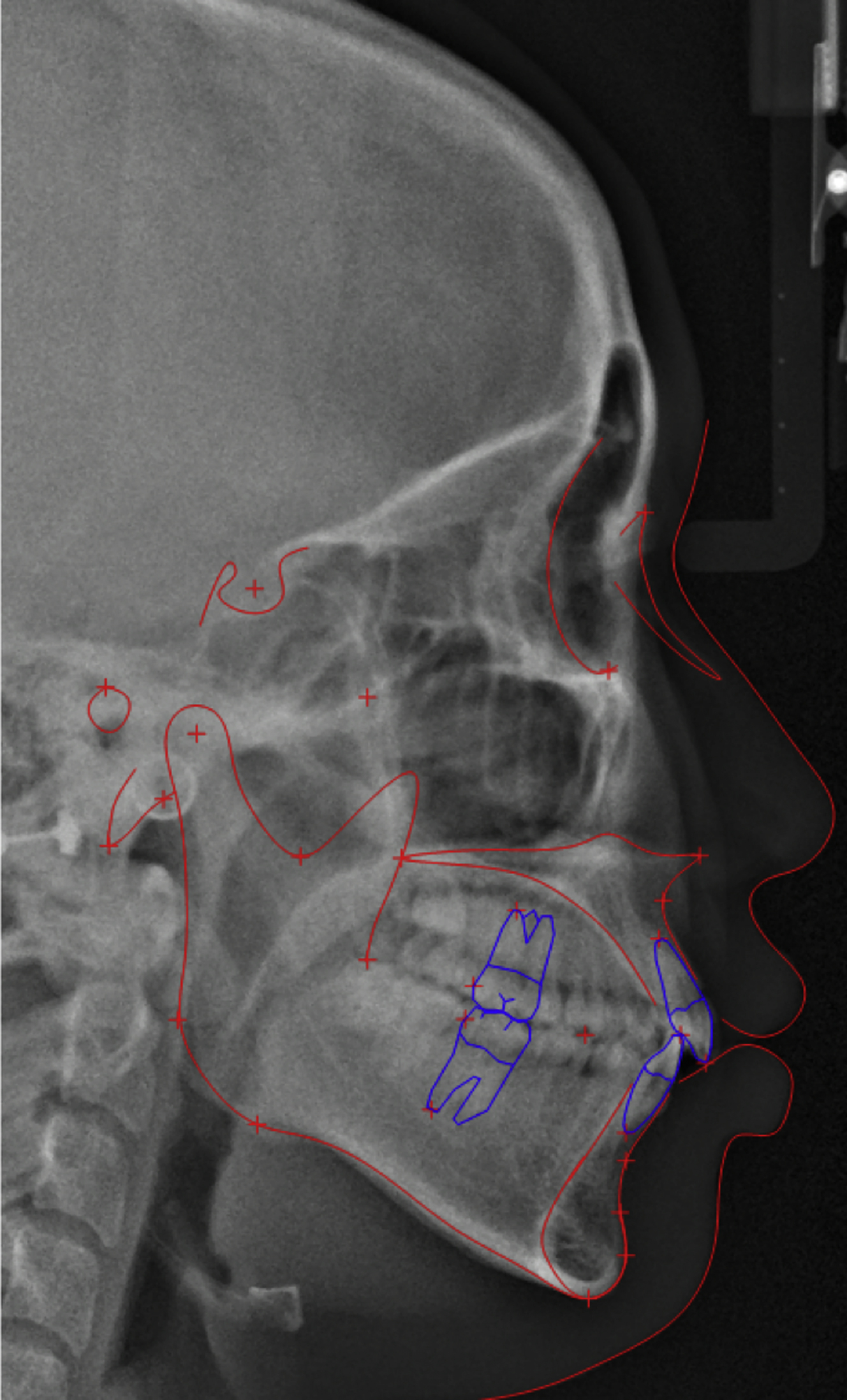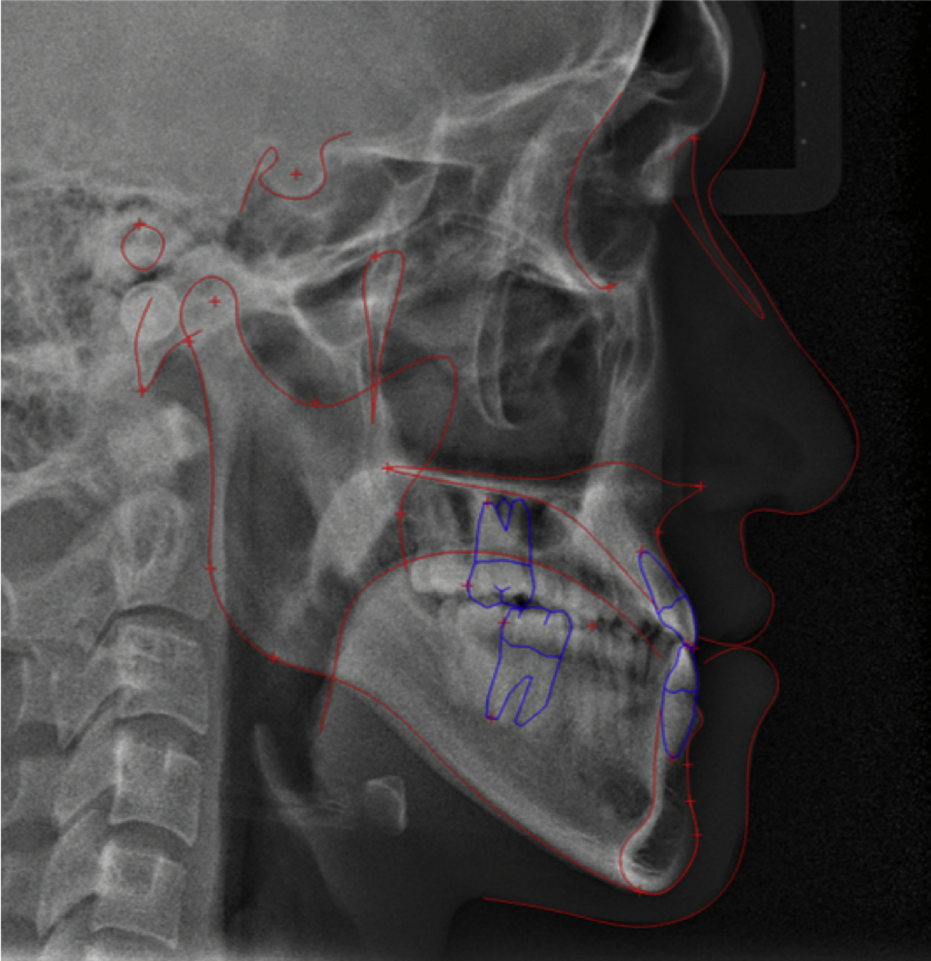 Lateral cephalometric analysis of the patient at pretreatment