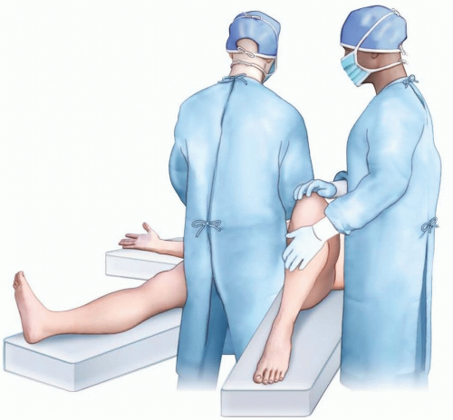 The patient is placed in the supine position on the operative table with the donor side knee flexed 90 degrees. A roll is placed under the ipsilateral hip to internally rotate the pelvic girdle and keep the hip and knee flexed.