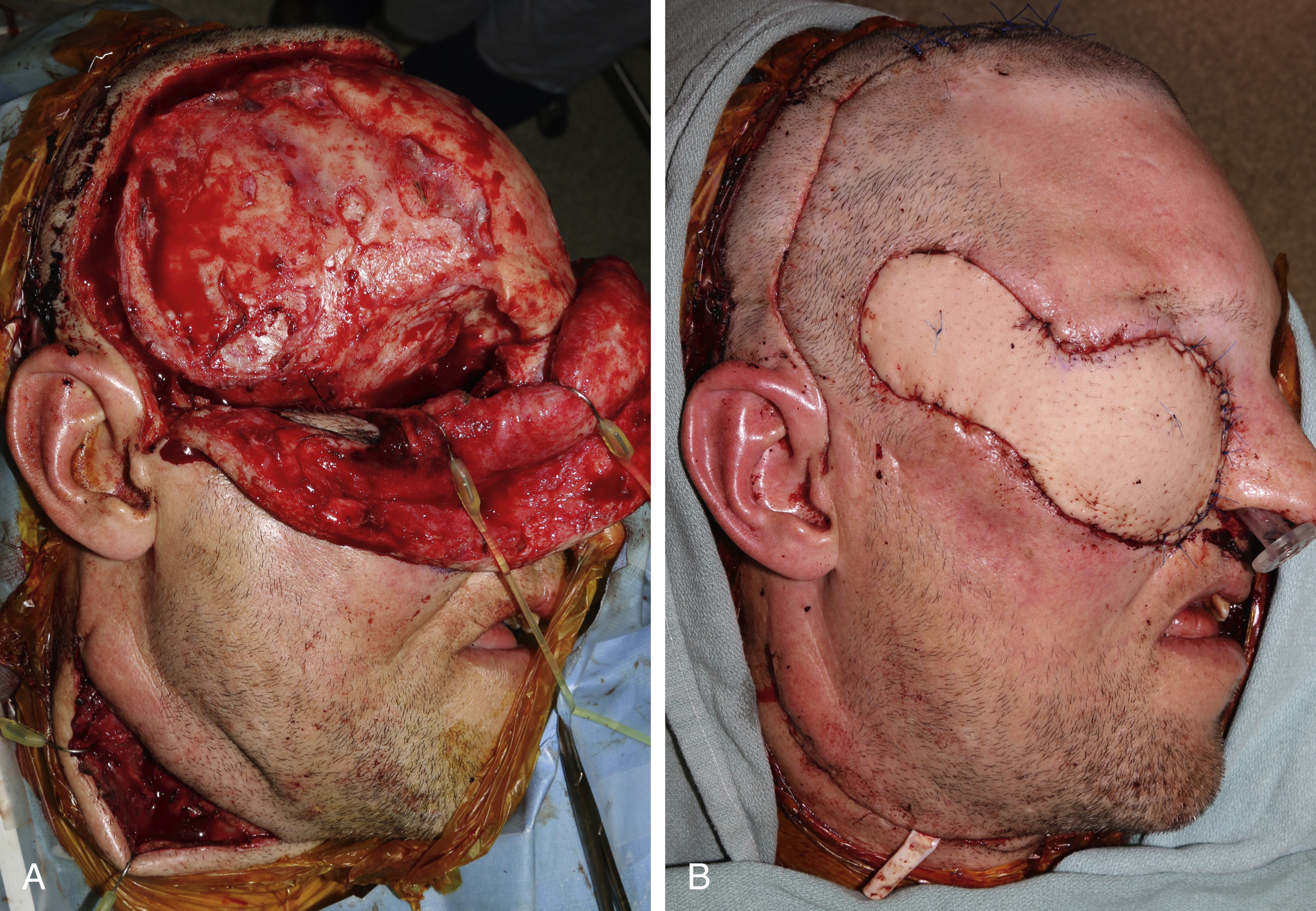The goals of skull base reconstruction include sealing dural leaks, dead space obliteration, separating the aerodigestive tract from the intracranial space, protecting the brain, and restoring cranial nerve function and appearance. Historically, reconstructive efforts were limited to skin grafts, pedicled flaps, and staged tubed flaps; such reconstructions were plagued by a variety of wound healing complications and significant cosmetic deformity. As such, skull base resections were associated with poor outcomes.