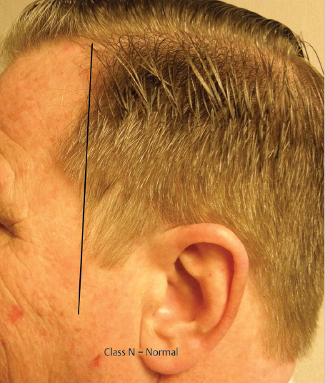 •N = Normal: No thinning or recession of temporal point hair (Fig. 41.1).