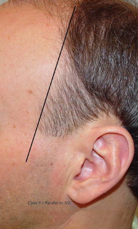 Fig. 41.3 Class P: parallel to the anterior sideburn line.
