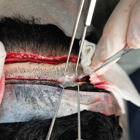 Fig. 42.2 Skin hook dissection preserves the vasculature and minimized follicle transection.
