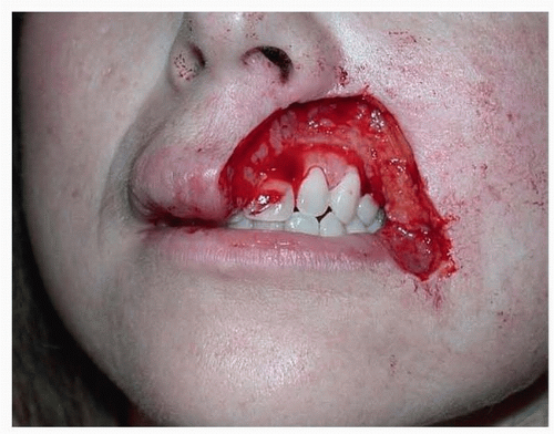 Defects of the lips may occur from malignancy (most frequently squamous cell carcinoma followed by basal cell carcinoma), trauma, vascular malformations, or infections.1