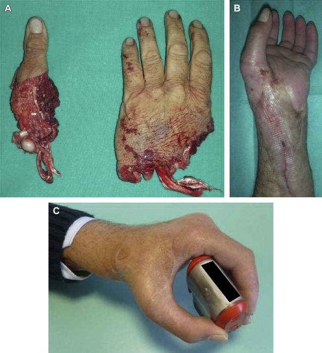 The most commonly accepted indications for replantation are thumb, digit in child, multiple digits ( Fig. 1 ), and distal to the flexor digitorum superficialis tendon insertion ( Table 1 ). There is disagreement with regard to the level of amputation, with some surgeons advocating revision amputation if the level is proximal to the flexor digitorum superficialis tendon insertion, whereas others have shown good functional outcomes with replantation at more proximal levels and involving only a single digit. Indications for replantation at very distal levels continue to evolve as good outcomes are reported in situations previously treated with revision amputation.