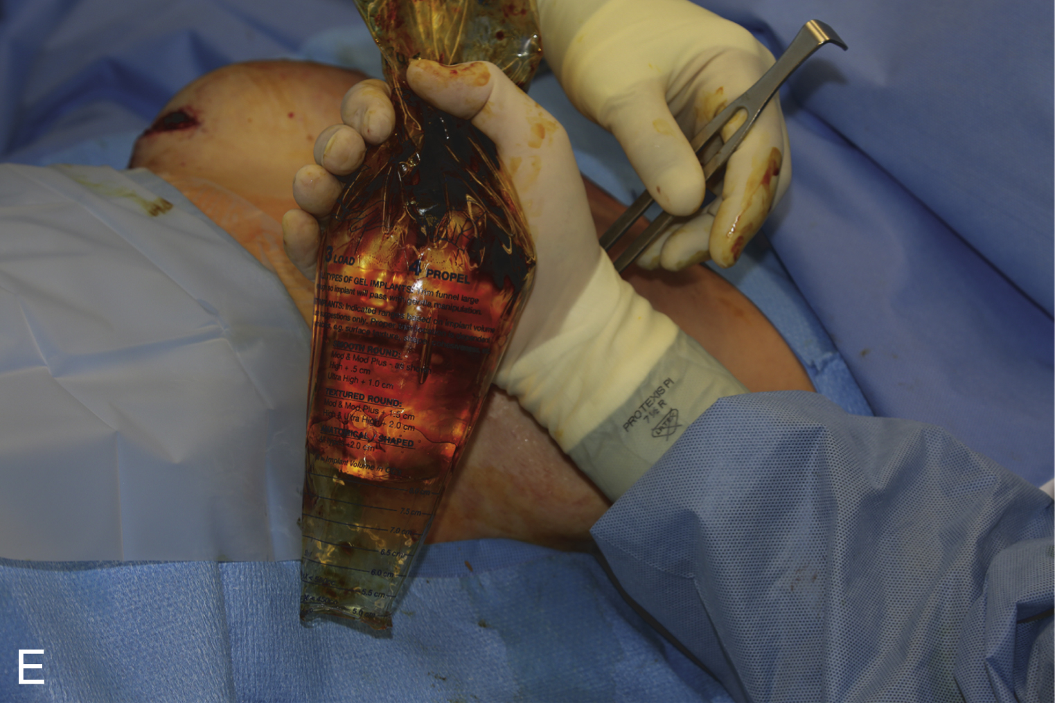 From that point, removal of the existing implants and replacement can be accomplished. Most implants have information on the patch that indicates manufacturer and style, which is potentially useful when medical records from earlier surgery are not available. In some cases, it may be necessary to measure the implant BD once the implant is outside the pocket and weigh the implant. Even in situations of ruptured gel implants, try to locate the patch on the implant shell for information.