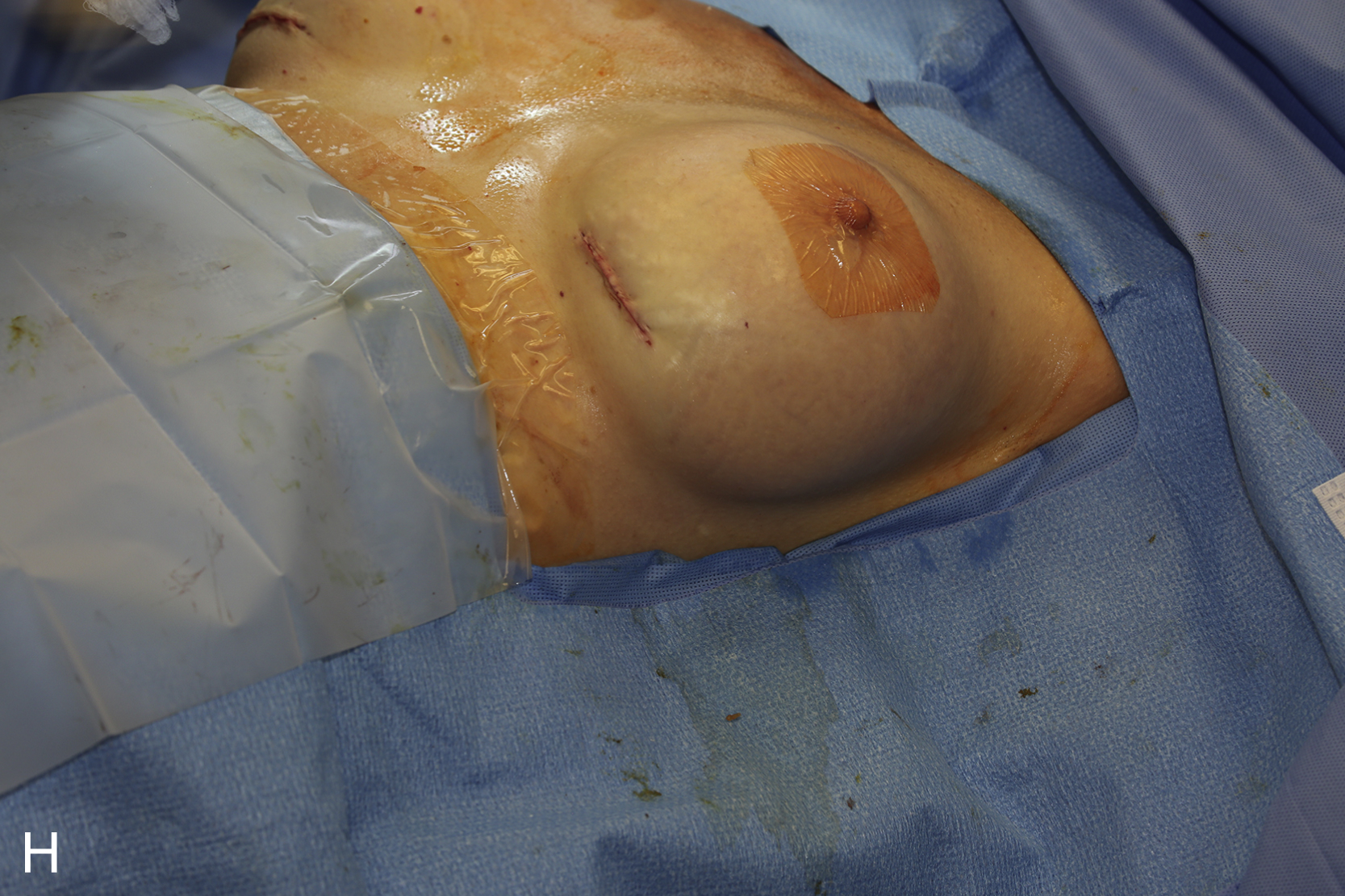 A 46-year-old woman presented 13 years after a biplanar saline breast augmentation with Inamed Style 68, 300–330 cc implant. She had experienced a partial deflation on the right side. She elected to replace with Allergan Inspira SRF 345 cc implants. This was a straightforward exchange without the need for capsular modification. Her surgery is shown in a stepwise fashion ( Case 8.1.1A–H ). This is a typical example of a saline deflation shown with a right-sided loss of volume. Her outcome after implant exchange is shown in Case 8.1.1I . The implant was found to have a valve failure with partial deflation (see