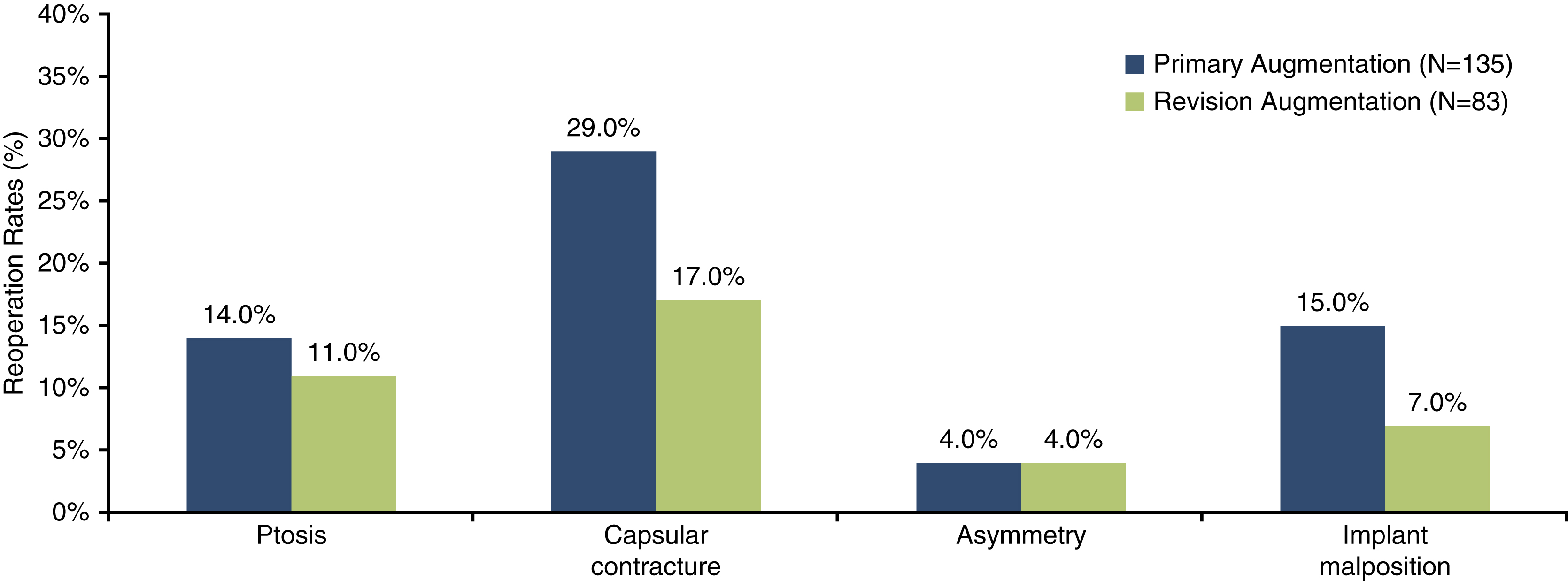 Malposition of the breasts is one of the top two major complications after breast augmentation in nearly every published study in the literature. Revision rates as high as 30% have been reported after primary augmentation, with rates increasing to over 45% in patients undergoing more than one revision.