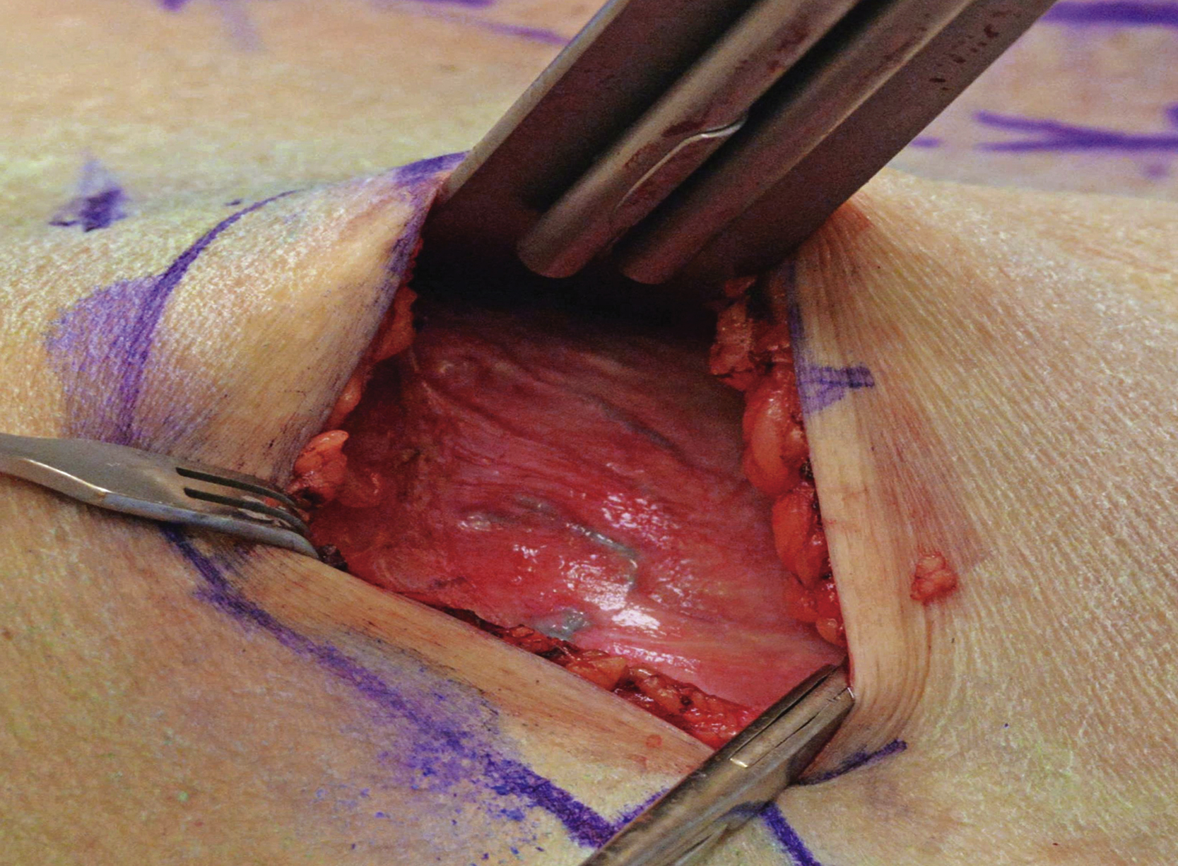 • For patients with larger breasts or combined breast/implant volume, prior history of significant weight loss or more than 2 cm of pocket width, I perform a posterior capsular flap with reinforcement.