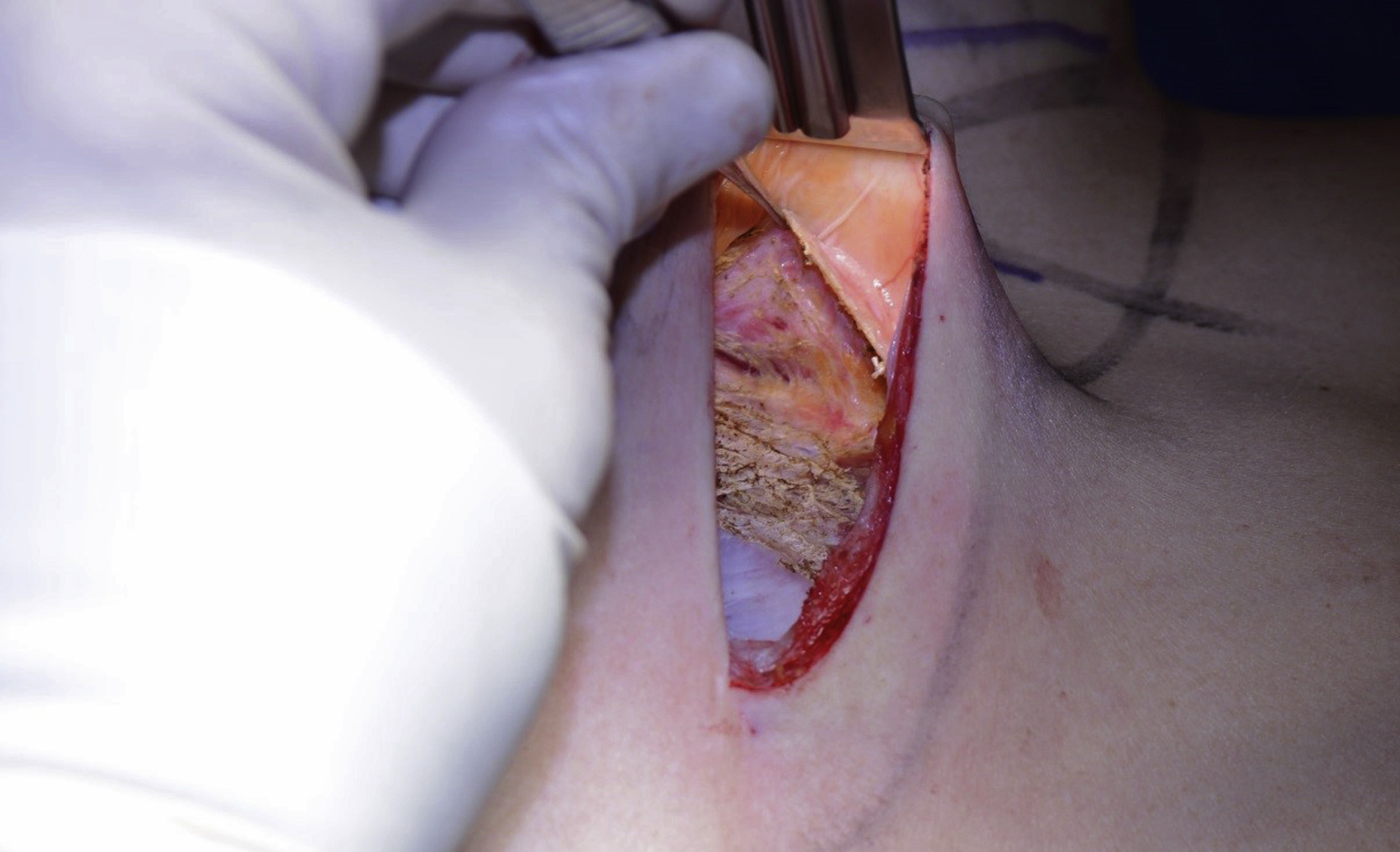 The posterior capsular flap is elevated and when rotated up onto the anterior surface will thicken the anterior soft tissues versus thinning the anterior surface with a classic neosubpectoral pocket.
