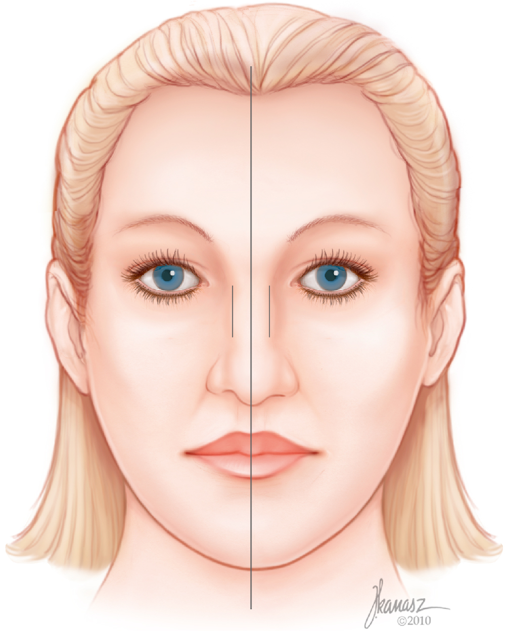 • When the dorsum is narrow, the eyes may appear closer to each other and widening of the nose may provide an impression of widened distance between the eyes.