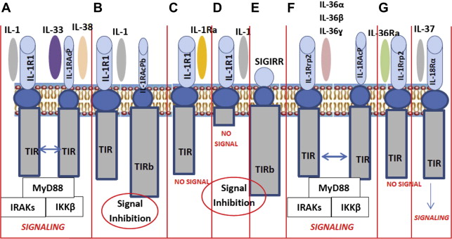 With the ongoing discovery of the mechanisms and pathways of inflammation, receptor response, and cytokine expression, the IL-1 family has expanded to the current 11 members shown in Table 1 . The IL-1R family has also expanded to 9 distinct genes and includes coreceptors, decoy receptors, binding proteins, and inhibitory receptors.