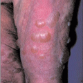 Multiple painful inflammatory nodules and fluctuant abscesses occur, giving a ‘boggy’ feel to the affected areas (8.7). It is most common over the occiput. As lesions settle with scarring, alopecia occurs.