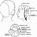 The arteries of the scalp and their accompanying veins originate peripherally and ascend to the dome in bilateral fashion (1) (Fig. 1.2); thus, it is preferable to base scalp flaps peripherally. In the younger patient, there is widespread anastomosis of the end vessels at the vertex, which provides greater latitude of safety in flap design, even permitting retrograde flaps based on this rich vascularity at the vertex. This latter advantage is not enjoyed by the older patient in whom arteriosclerosis diminishes these end vessels. One may surmount even this obstacle by including a large artery in the base of the flap together with delay of the flap. This has been demonstrated with the transfer of postauricular skin on a pedicle extending across the dome to the contralateral superficial temporal vessels (2). Successful microvascular replantation in which the entire scalp and one ear survived on a singular artery and vein reanastomosis has been reported (3, 4).